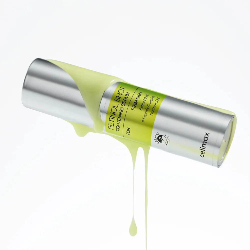 Celimax Retinol Shot Serum s 0,1% retinola i 9 peptida zaglađuje bore, smanjuje pore i poboljšava teksturu i čvrstoću kože.