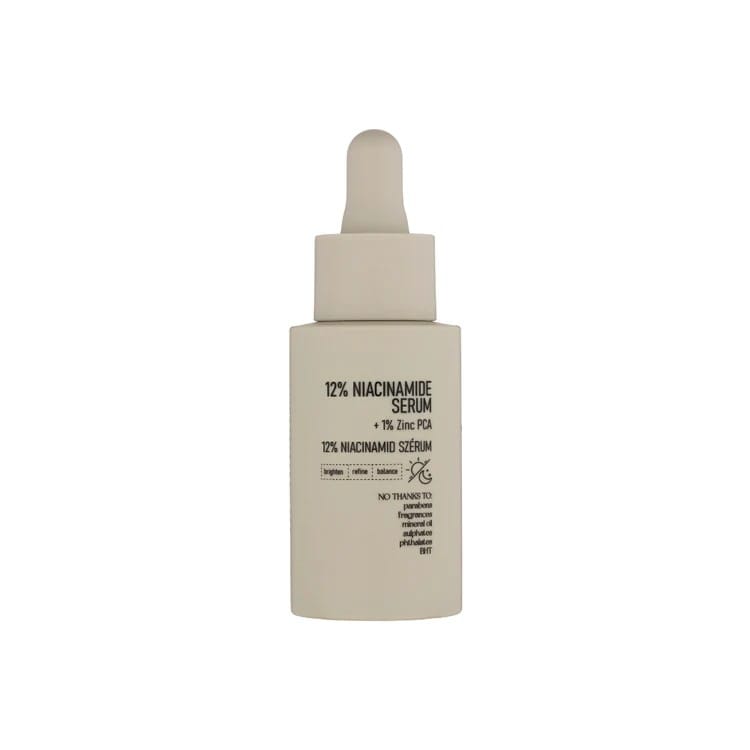 Nerds 12% Niacinamide Serum je koncentrirani serum formuliran s 12% niacinamida (vitamina B3) i 1% cinka PCA, namijenjen poboljšanju teksture kože, regulaciji sebuma i smanjenju vidljivosti pora.