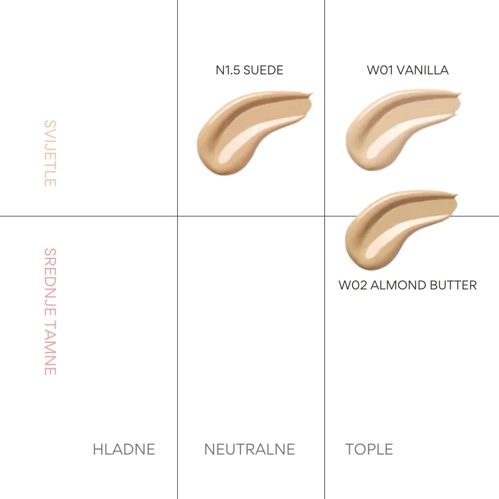 - W02 Almond Butter – prirodna žuta bež nijansa, preporučena za tonove 22–23
